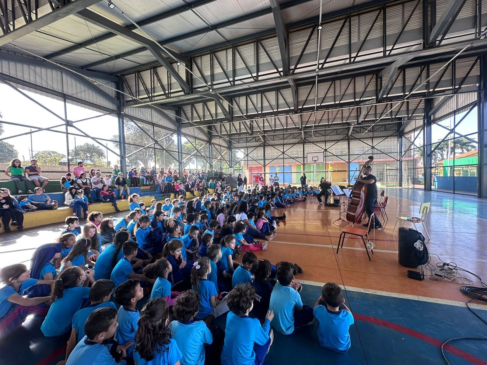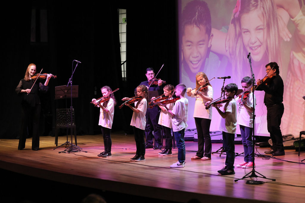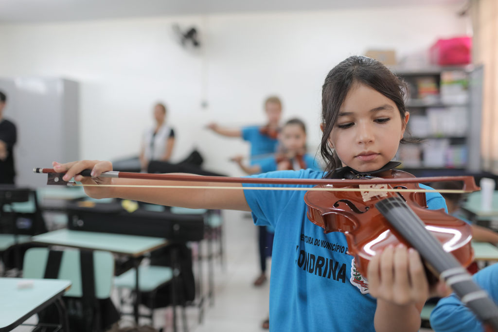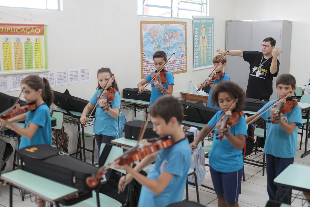 O projeto acontece desde o início de 2023 e atende atualmente 23 unidades escolares municipais, contabilizando mais de 1200 alunos, oferecendo oficinas de musicalização. As aulas de musicalização com introdução à prática orquestral são ofertadas para alunos na faixa etária entre 6 e 11 anos, explorando o ensino coletivo, onde todos os instrumentos de cordas são ensinados. Nos CMEIS, os professores trabalham com percepção sonora e corporal, ritmo e outros atributos específicos para a idade atendida, que vai de 3 a 5 anos. Além da sala de aula, o projeto oferece a oportunidade de protagonismo para os alunos, os levando para apresentações, concertos e eventos diversos. O projeto conta com uma equipe pedagógica de coordenadores e dez professores, todos musicistas profissionais, que acumulam anos de experiências didáticas e artísticas.